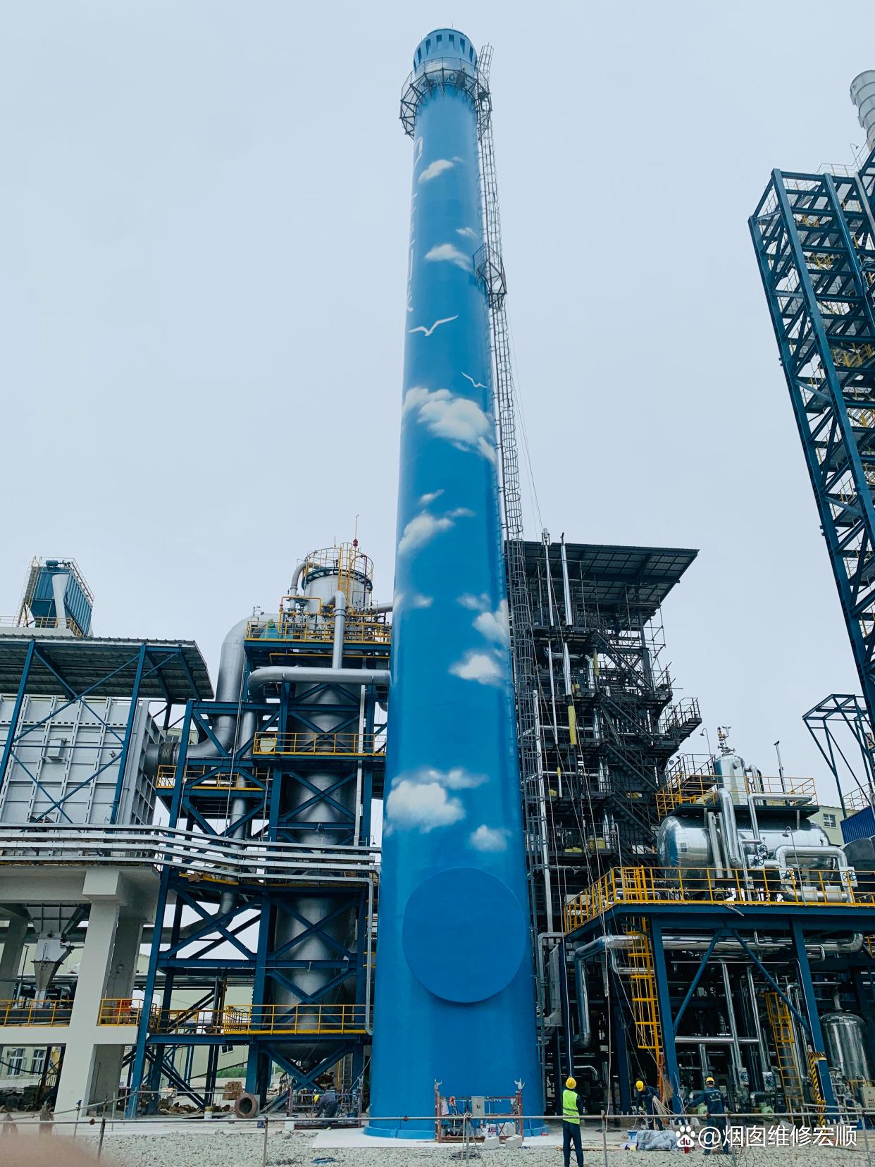 高壓水槍清洗:清除煙囪表面松散附著物、鹽分及舊涂層,為后續(xù)防腐處理提供清潔基底。